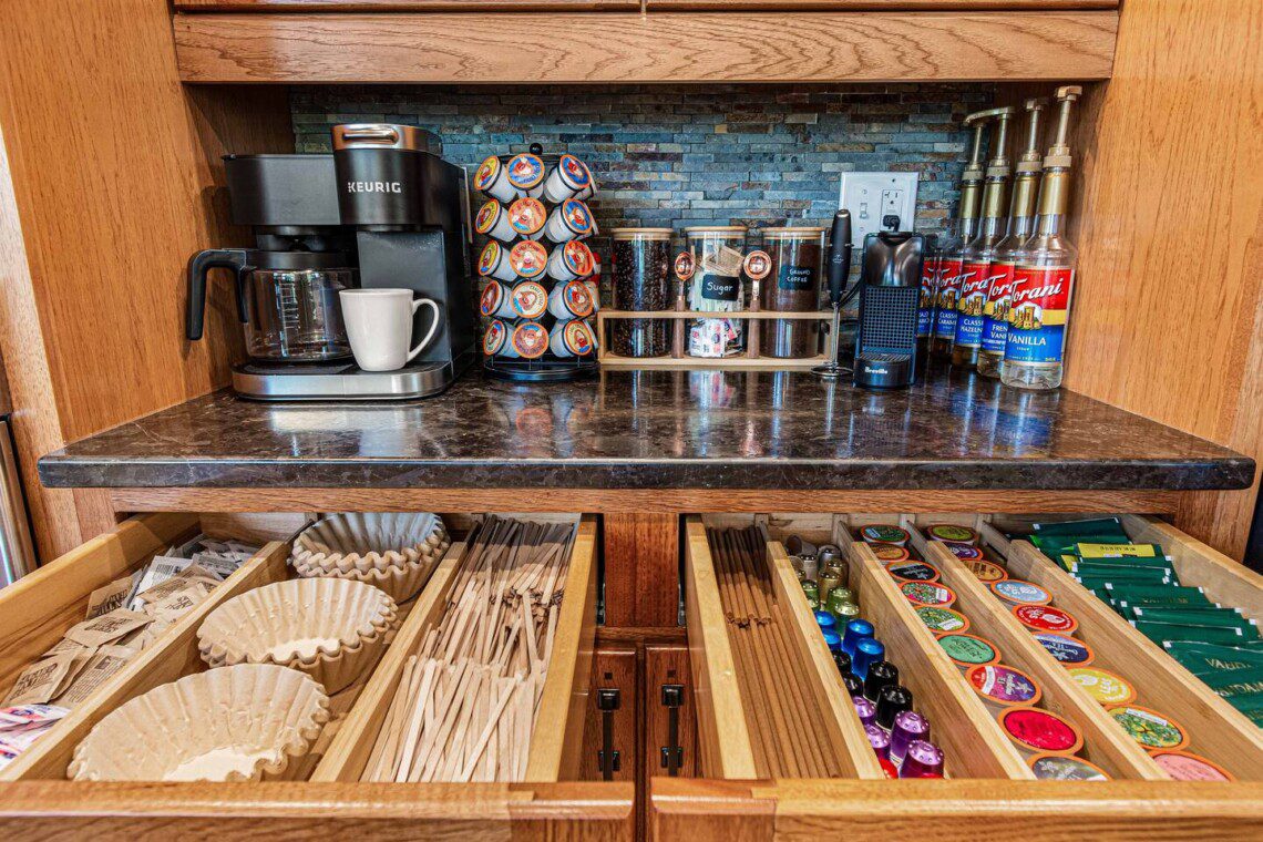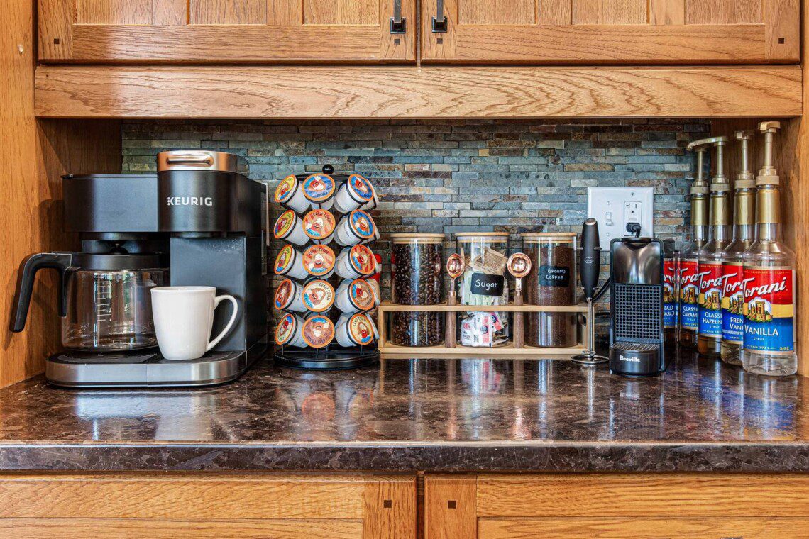 – 5-burner gas range, wall oven, Nespresso + Keurig Duo + French press, slow cooker, waffle maker, rice cooker, and a full coffee/tea station with pods provided.