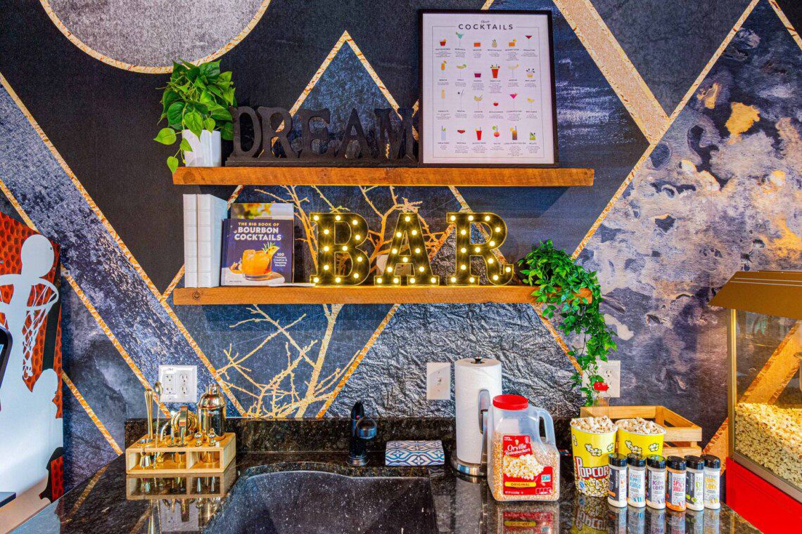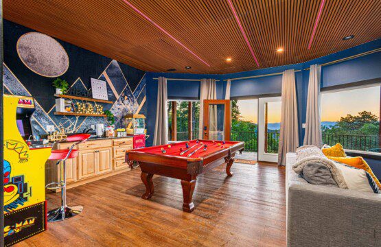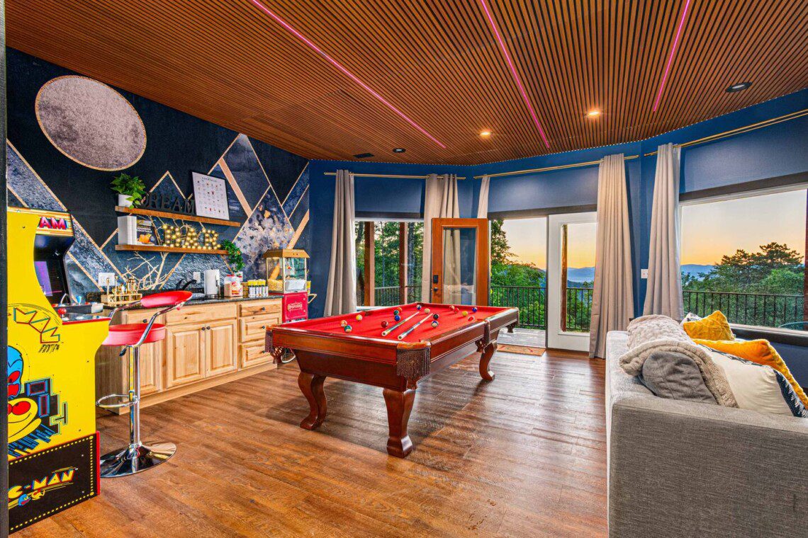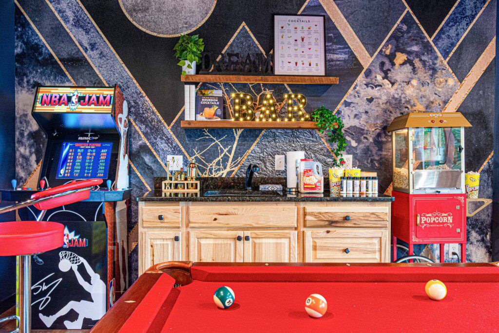 – Wet bar, billiards, ping-pong, shuffleboard, arcade games (Pacman, NBA Jam, NFL Blitz), giant Connect 4, Jenga, and 65″ TV.